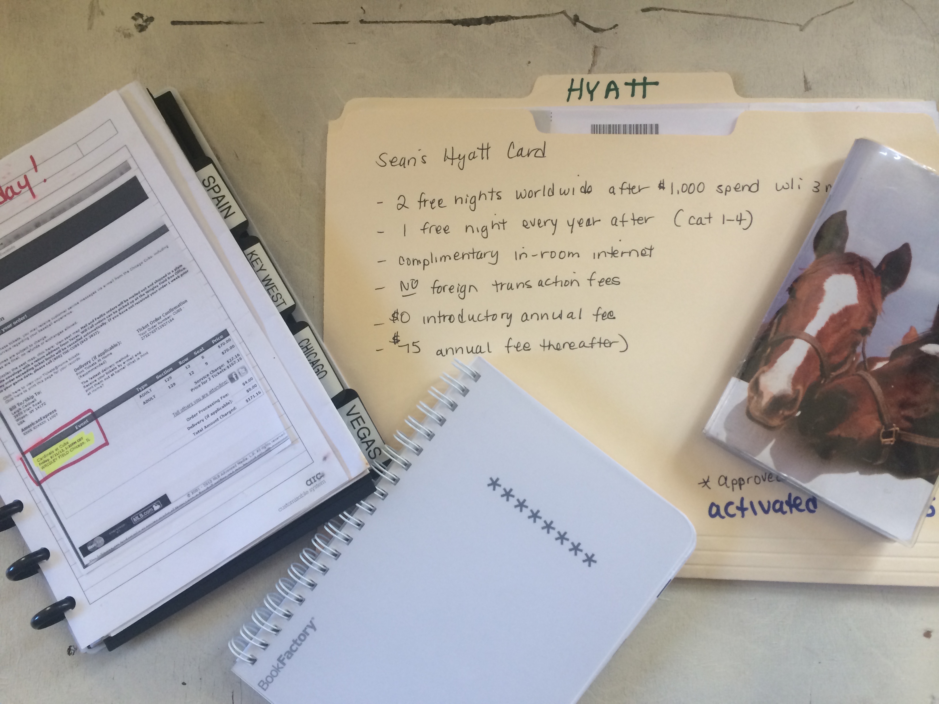 - On the outside of the folder indicate what credit card you applied for, when you applied, approval date, activation date and particulars of the card such as the spend requirement, and annual fees. This information is something you will refer to frequently and will help you when you start adding several cards to you wallet.