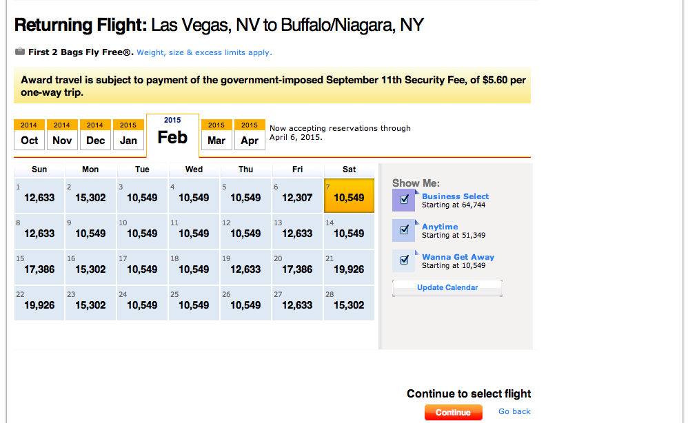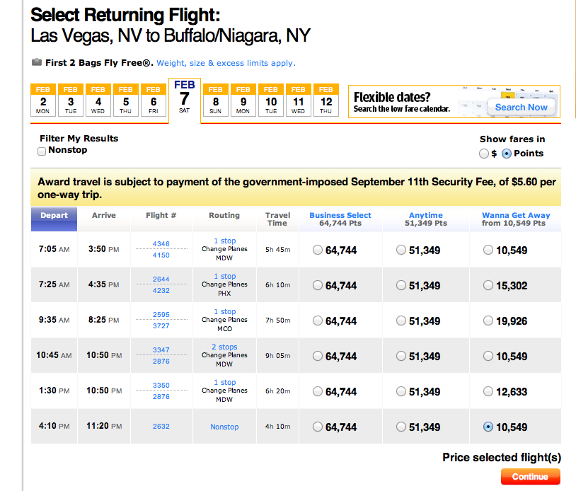 Choose your flights and hit continue.