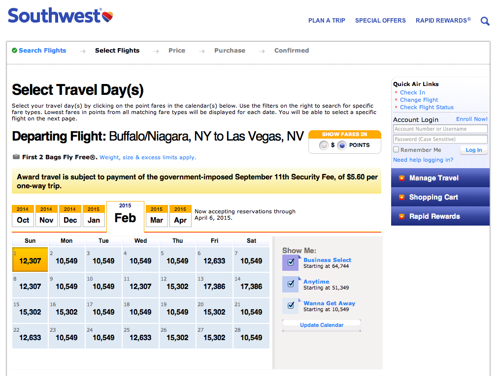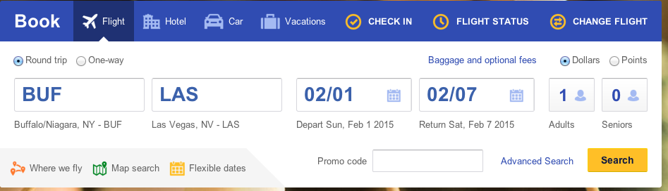 One (non-stop) Round trip ticket from Buffalo to Las Vegas in this example is 25,851 points and $11.20!